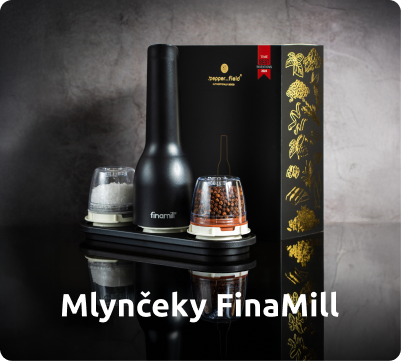 Konečne jeden mlynček na všetky Kampotské korenia a za dostupnú cenu! Rovnako ako za .pepper..field stoja David s Klárou, za FinaMillom stoja Alex a Sophia – manželia, ktorí milujú varenie a chceli vytvoriť mlynček, ktorý uľahčí dochucovanie a prinesie radosť do každej kuchyne. Po 10 rokoch vývoja, 35 patentoch a mnohých testoch vznikol v USA FinaMill – praktický, štýlový a predovšetkým geniálne jednoduchý.