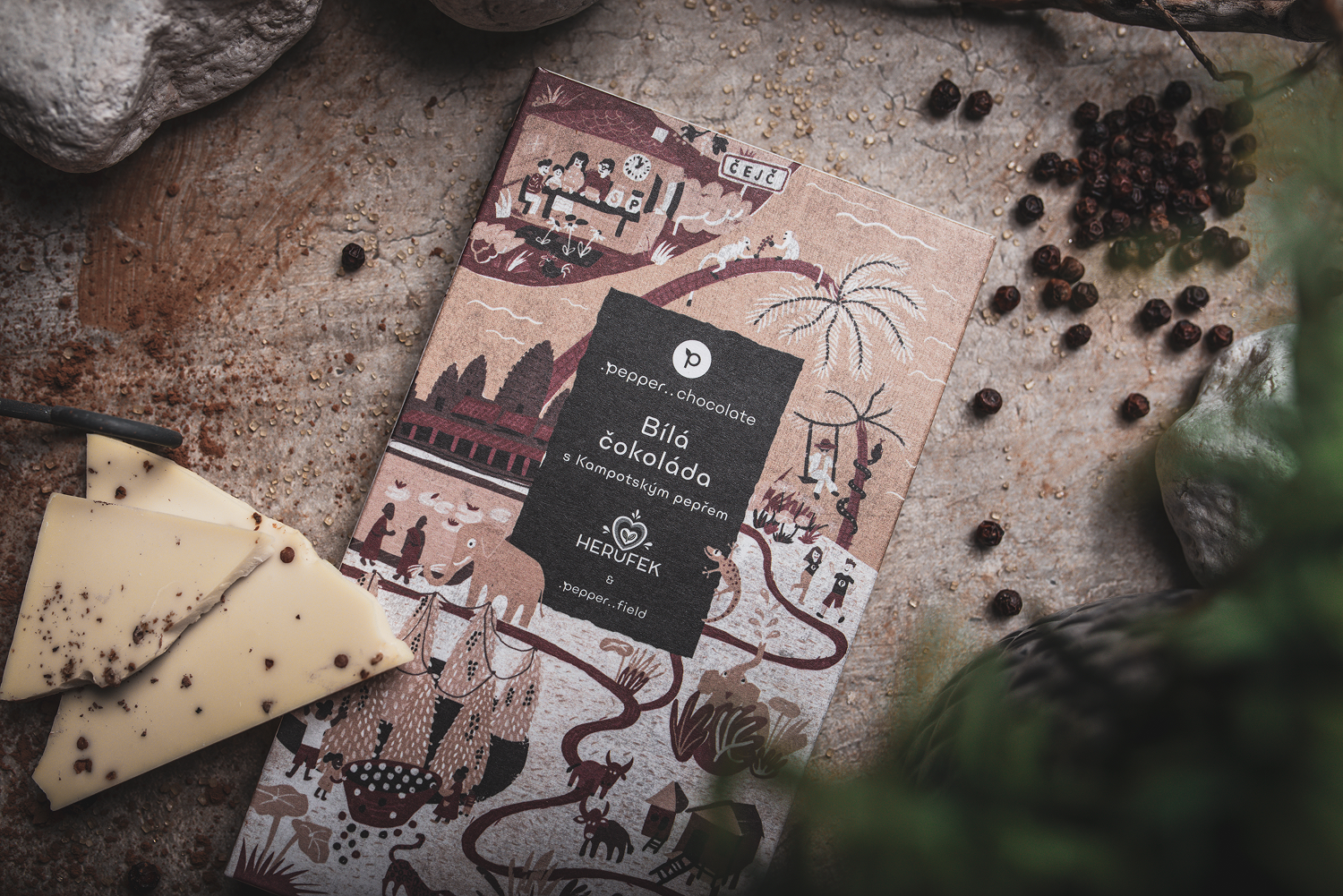 Abychom ještě více podtrhli výjimečnost této čokolády, balíme ji do obalů s nádhernými ilustracemi od studia BUTTERFLIES & HURRICANES, které po spojení vypráví příběh čokoládovny HERUFEK a .pepper..field. Obaly jsou navíc vyrobené z papíru, takže je lze velmi snadno recyklovat.