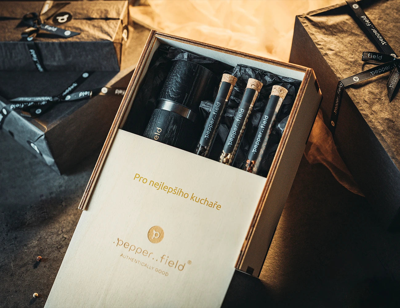 Autenticita pro nás představuje dovézt vám nejlepší pepř světa a zabalit jej ručně do nejkvalitnějších, ideálně přírodních a lokálních materiálů, které obdarovanému ukážou, že vám na něm opravdu záleží. Vygravírovat jméno obdarovaného do krabičky. Ručně ji zabalit hedvábným papírem. Převázat ji naší nádhernou stuhou. Zkrátka to, co vám stroj nikdy neudělá.
