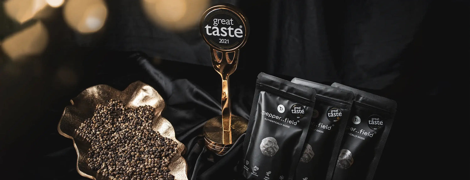 The quality of Kampot pepper is truly exceptional. Our regular successes in one of the most prestigious gastronomic competitions in the world – the Great Taste award – are proof of that. As early as 2021, we became the first Czech public project to receive the Golden Fork – the highest award in this competition.