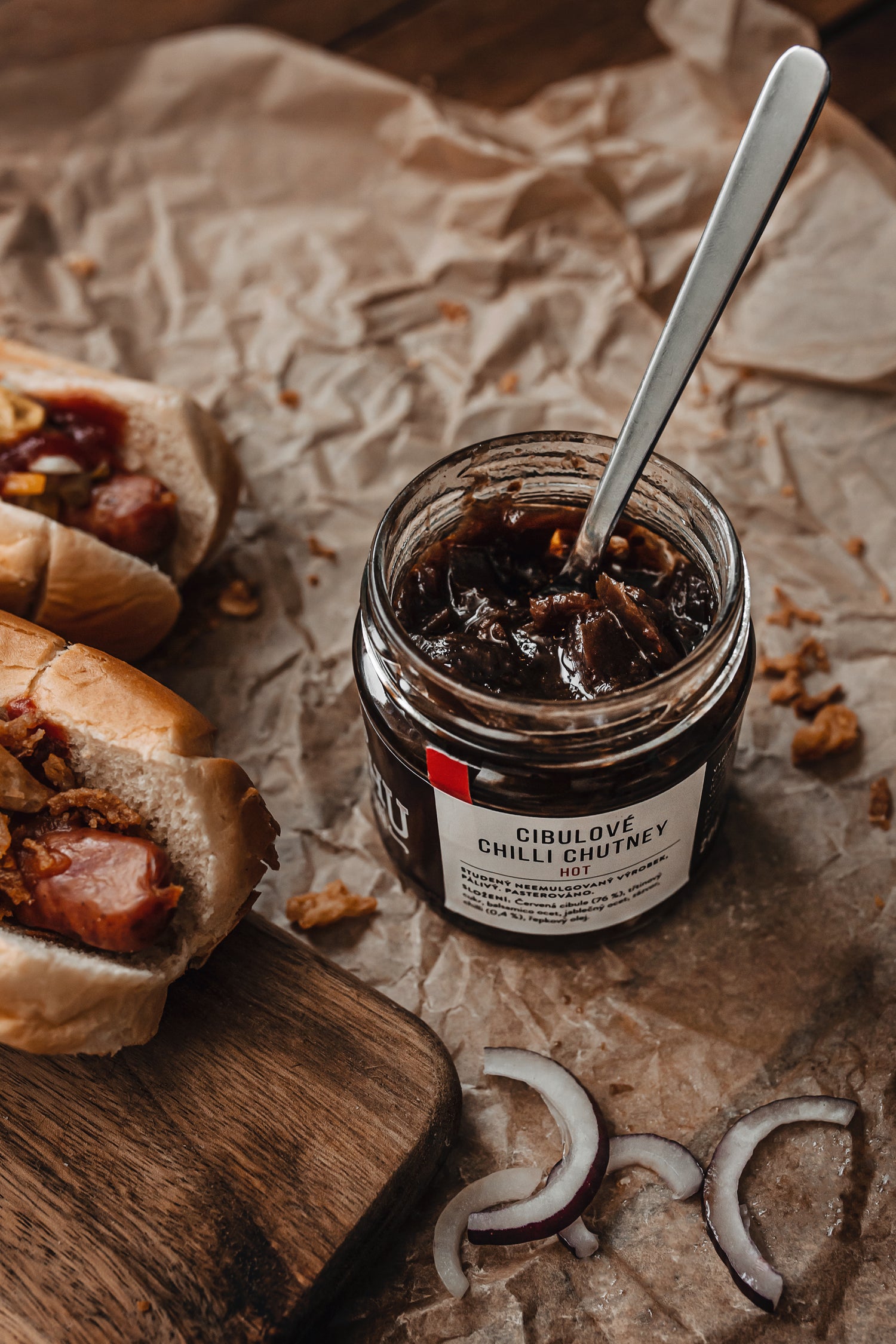 Chutney d'oignon HOT est idéal pour les burgers, les sandwichs, comme accompagnement pour le barbecue ou pour des amuse-bouches simples et rapides.