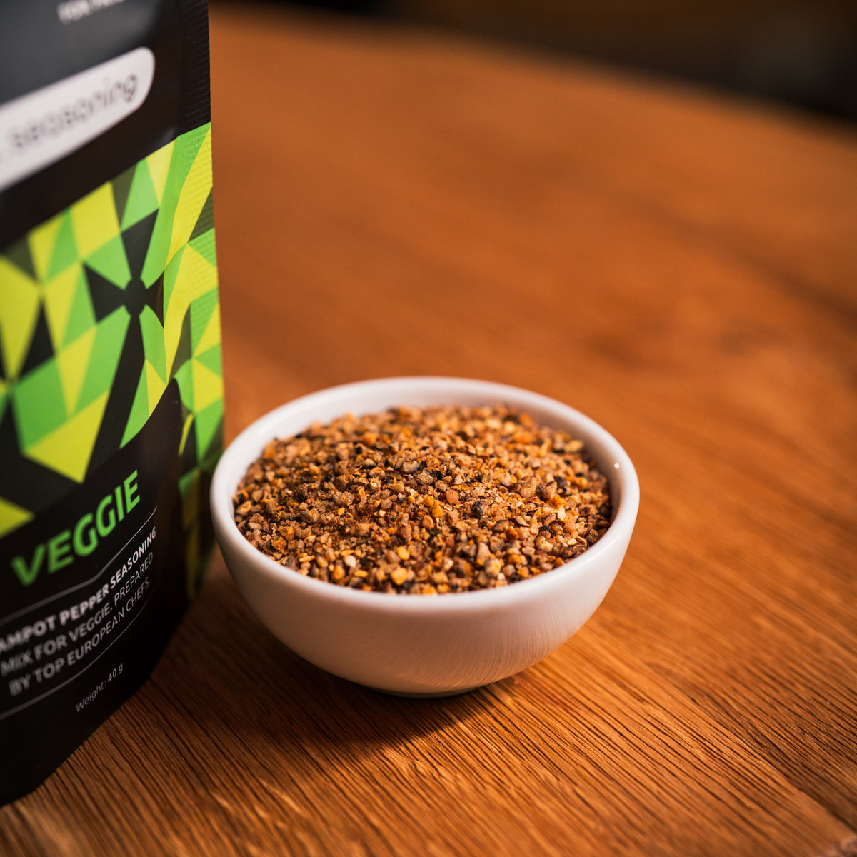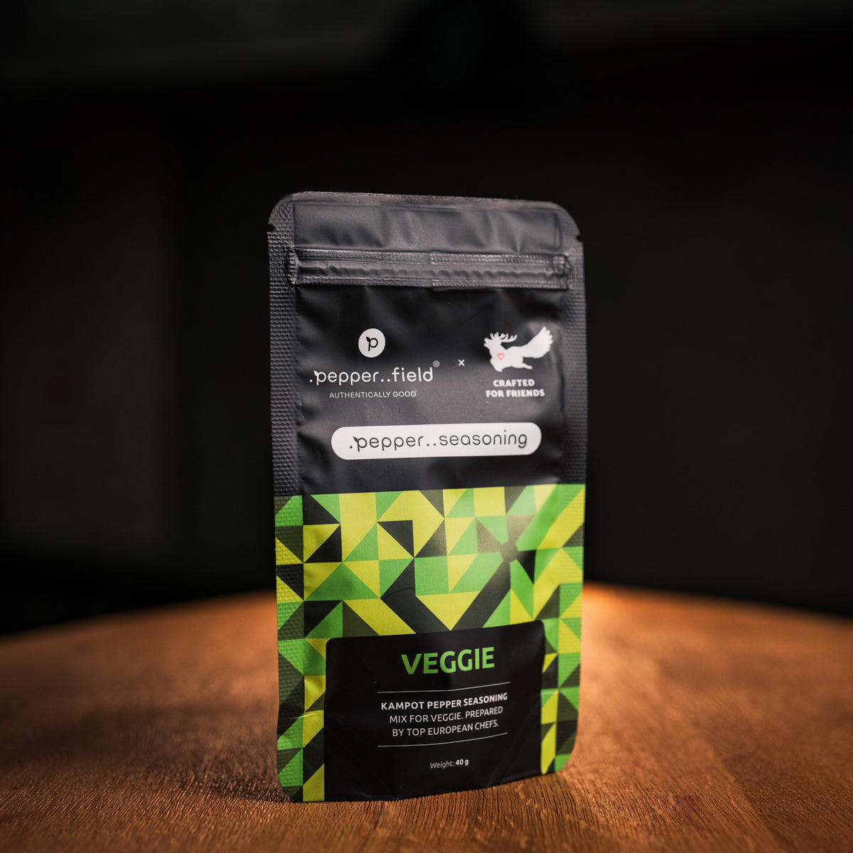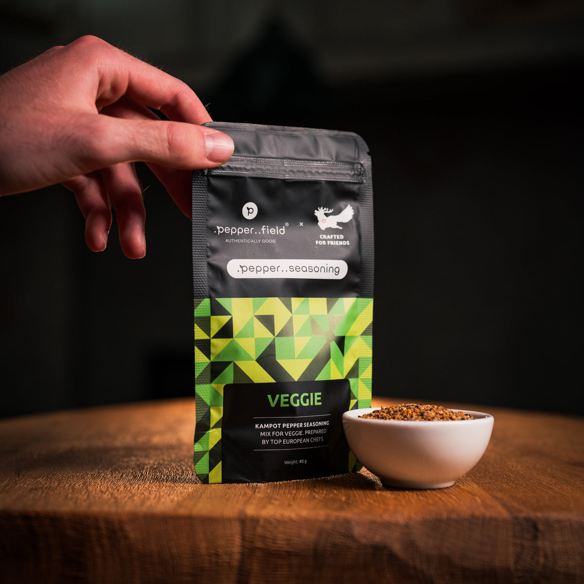Zmes je navrhnutá tak, aby obohatila zeleninové pokrmy a zvýraznila ich už tak skvelú chuť. Kombinácia červeného a bieleho Kampotského korenia s citrusovou kôrou a badiánom prinesie vašim ľahkým jedlám a prílohám ďalší osviežujúci rozmer, ktorý zelenina za bežných okolností postráda.